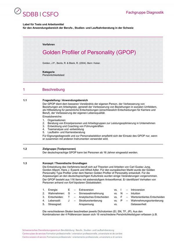 Golden Profiler of Personality (GPOP) je profesionálny psychodiagnostický nástroj určený na hlboké, no prakticky využiteľné poznanie osobnosti. Vychádza zo súčasných poznatkov psychológie osobnosti a pracuje s kombináciou faktorových modelov, motivačných vzorcov a behaviorálnych preferencií. Je navrhnutý pre koučing, rozvoj lídrov, kariérne poradenstvo aj tímovú prácu.